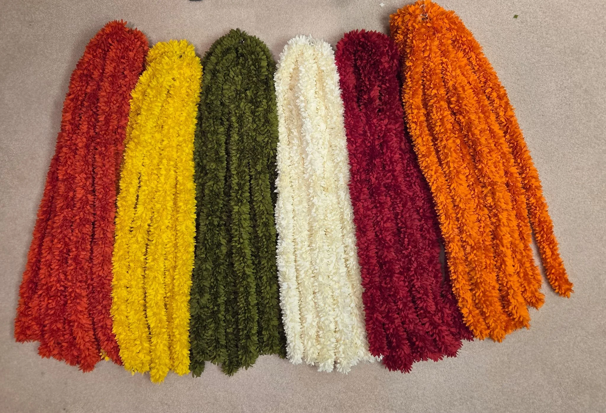 Store Categories: Select a Category Latest (Aug. 2025) All our creations Store Latest (Aug. 2025) All our creations Exquisitely Handmade Silk Flowers $35.00 Add To Cart Added! Jasmine String Mala $25.00 Add To Cart Added! Floral hanging Garland - Yellow & Rani Red $30.00 Add To Cart Added! Doorway Toran / Hangings / Artificial Flower Hanging / Indian Decoration $190.00 whole set as shown price is $190. plus tax Added! Single Color strings $14.00 Add To Cart Added! Jasmine Garland – White with Red & Gold Rose Accents $45.00 Add To Cart Added! Temple Grand Floral Set – Red, Yellow & Green Garland hanging $22.00 Add To Cart Added! Grand Triple-Stripe Garland Set – Marigold, Jasmine & Rose Accent with Golden Bells $12.00 Add To Cart Added! Two-Tone Temple Garland – White & Magenta with Golden Bell Finish $12.00 Add To Cart Added! Traditional Toran Garland – Ivory & Marigold Accent $120.00 Add To Cart Added! Classic Garlands – Multicolor Collection $15.00 Add To Cart Added! Elegant Pink Rose Garland – Soft Bloom Edition $40.00 Add To Cart Added! Regal Red Rose Garland – Velvet Finish Sale Price: $35.00 Original Price: $40.00 Sale Red Pink Dark pink Add To Cart Added! Classic White Jasmine-Style Garland – Purity & Tradition in Every Strand $14.00 1 meter / 6" thickness/ many colors/ can be customized Added! Divine Floral Arch with White Chrysanthemums $0.00 Add To Cart Added! Royal Red Rose Garland $40.00 Add To Cart Added! Elegant Doorway Garland / Toran/ Door Hanging – Silk Floral Design Sale Price: $225.00 Original Price: $250.00 Sale Add To Cart Added! Elegant Handmade Door Toran/Indian Diwali Decoration Sale Price: $140.00 Original Price: $150.00 Sale Add To Cart Added! Handmade Wedding & Temple Garland-“Elegance in Every Strand” Sale Price: $200.00 Original Price: $250.00 Sale White with yellow rose white with red rose Add To Cart Added!